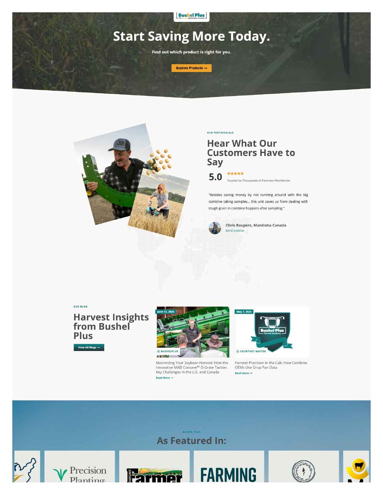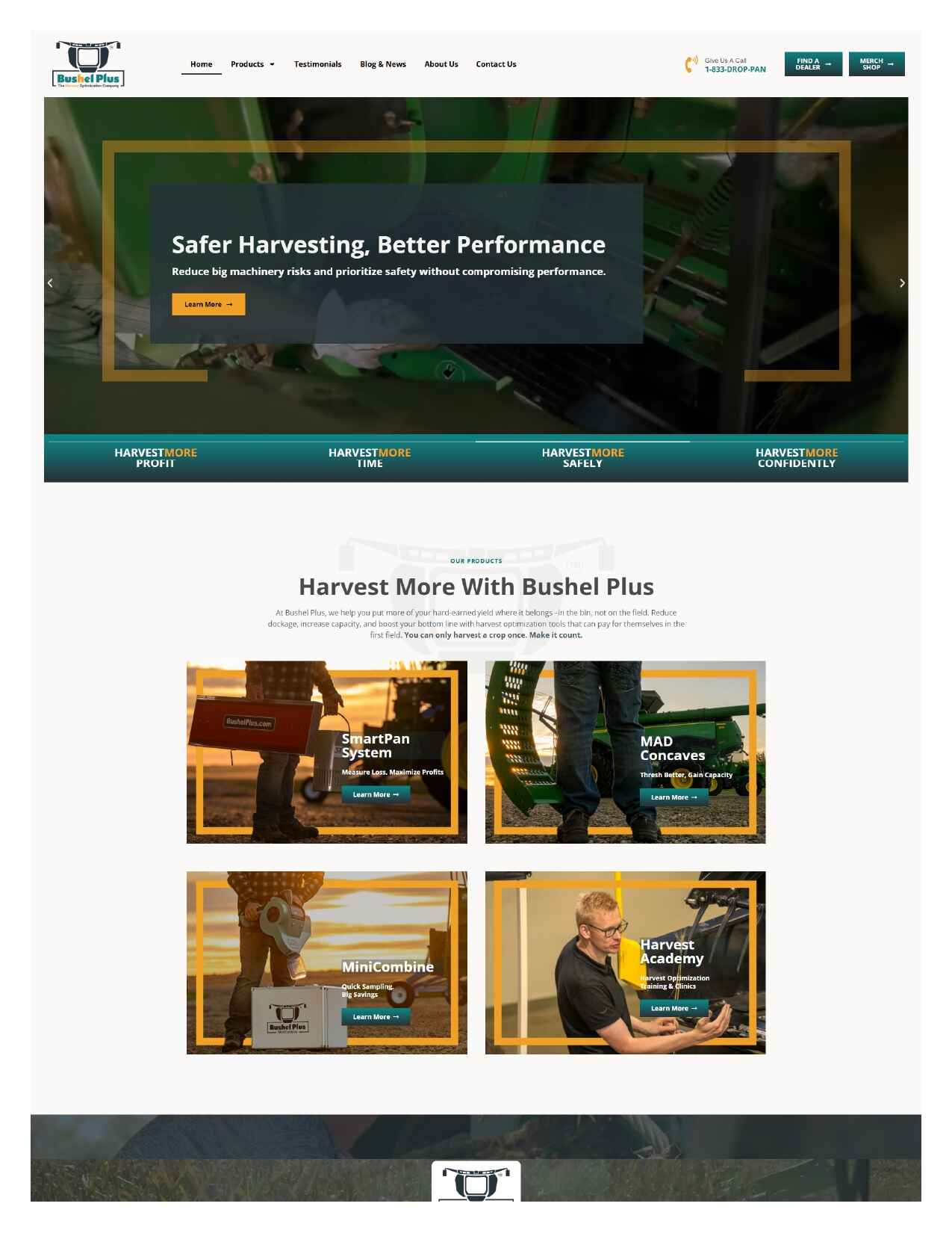 Bushel Plus is an agricultural technology brand specializing in harvest loss management tools. I worked on the website with a focus on clear product presentation, smooth navigation, and a scalable structure built in WordPress using Custom Post Types (CPT), supported by PHP and MySQL for stable backend performance.
