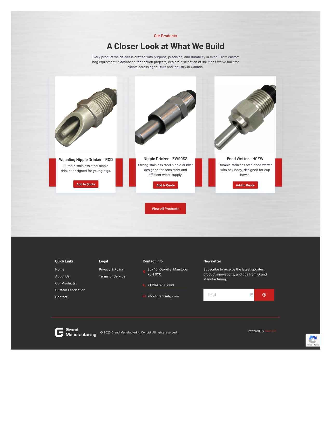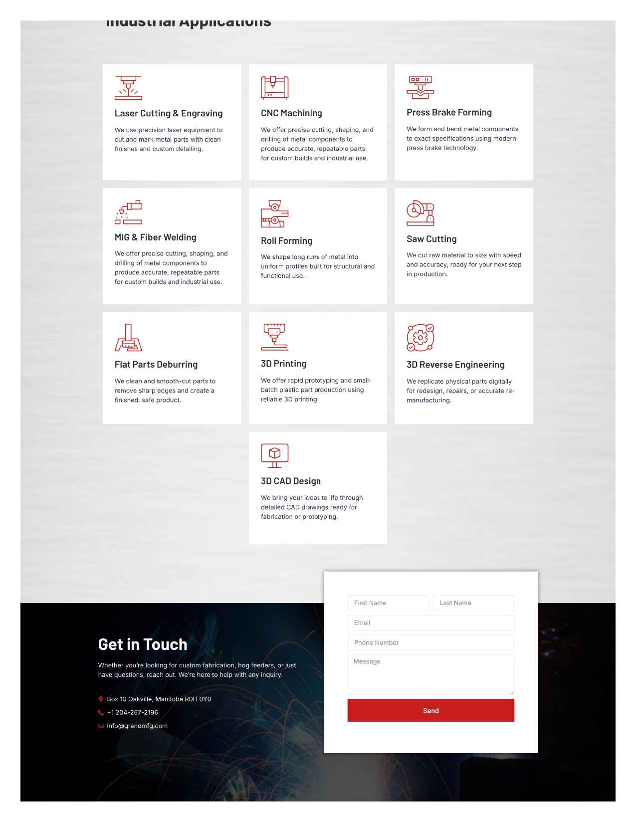 The final outcome is a clean professional and customer friendly platform that supports product browsing quote submissions and service inquiries while reflecting the strength and reliability of the Grand Manufacturing brand.