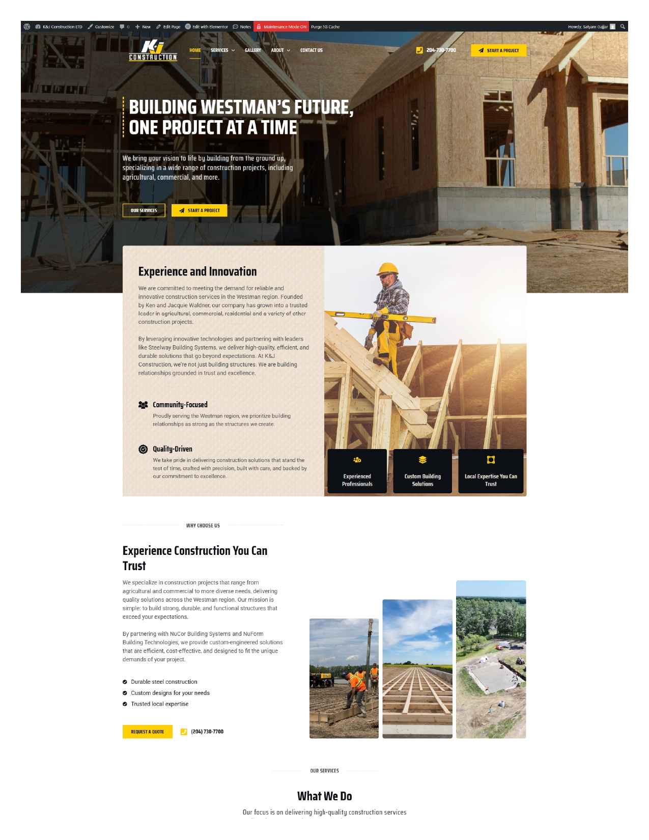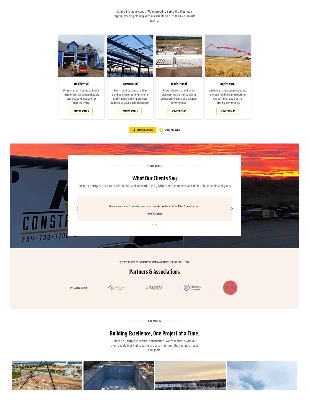 K&J Construction LTD is a locally owned construction company serving the Westman region, providing agricultural, commercial, residential, and institutional construction services. Designed and developed the website, including layout, UI, page flow, and visual components, to clearly present their broad range of construction offerings and company identity.