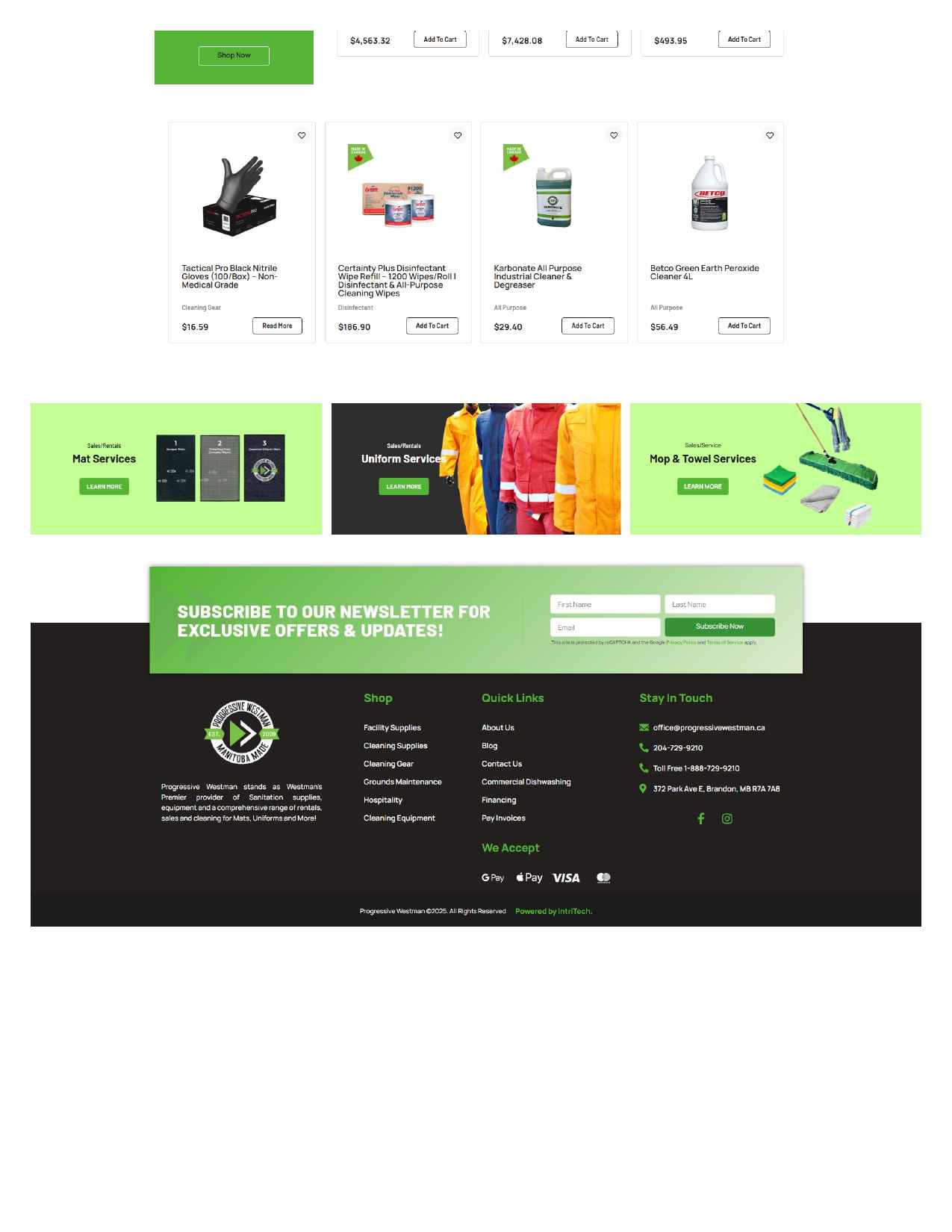 Progressive Westman is a sanitation supply and cleaning services company serving Western Manitoba and Eastern Saskatchewan. I created the required website pages including service listings rental programs mat and uniform supply and product sections to present offerings clearly and professionally.